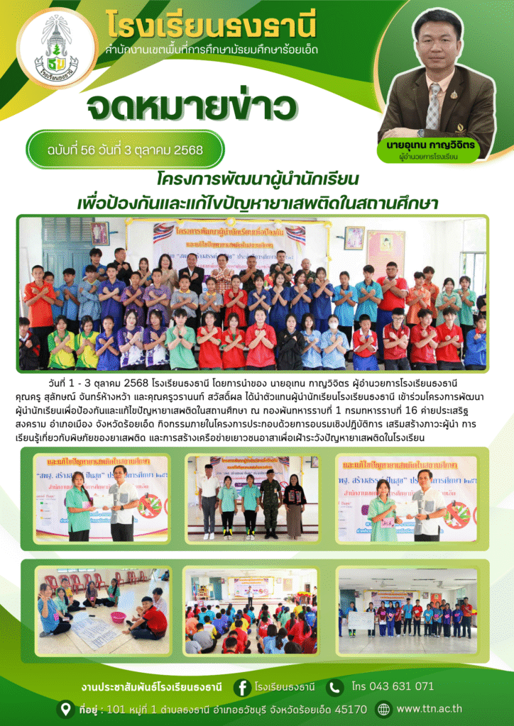 ผู้นำนักเรียนธงธานีร่วมพัฒนาศักยภาพเพื่อป้องกันยาเสพติดในสถานศึกษา