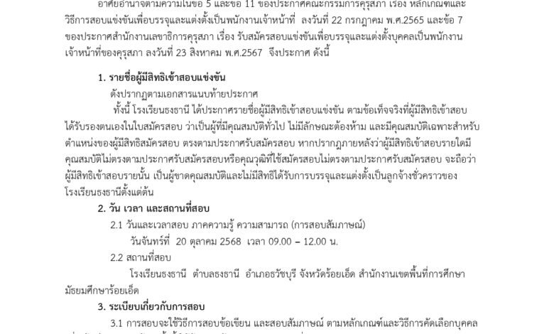 โรงเรียนธงธานีจัดการประเมินครูผู้ช่วย เพื่อเตรียมความพร้อมและพัฒนาอย่างเข้ม